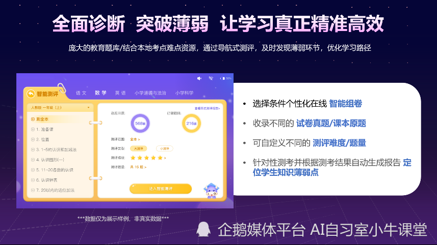 精准识别学生学习状态与进度,精准匹配学习需求,评估学习效果,帮助学生匹配学习最优解。